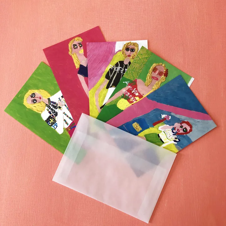 岩本 義夫/「金髪のお姉ちゃん 」のポストカードセット 5枚入り 岩本 義夫 1953年生まれ。 知り合いに誘われて遊びにきた福祉施設で初めて絵を描いた。 「金髪のおねえちゃんしか描きたくない」と言い、 雑誌を片手に大胆な筆遣いと色遣いで一気に人気作家に。 特にハイブランドの広告を好みモチーフに採用している。 若いころは父親の左官屋を手伝い、その後長く発破屋をやっていて天職だったが、 喧嘩別れして辞めてしまったという。 たまにべらんめえ調が出るが心優しい兄貴肌。 ● サイズ:100mm×148mm ●商品内容:ハガキ5枚  お使いのデバイスによ り商品写真のお色が実際と異なることがあります。ご了承ください。
