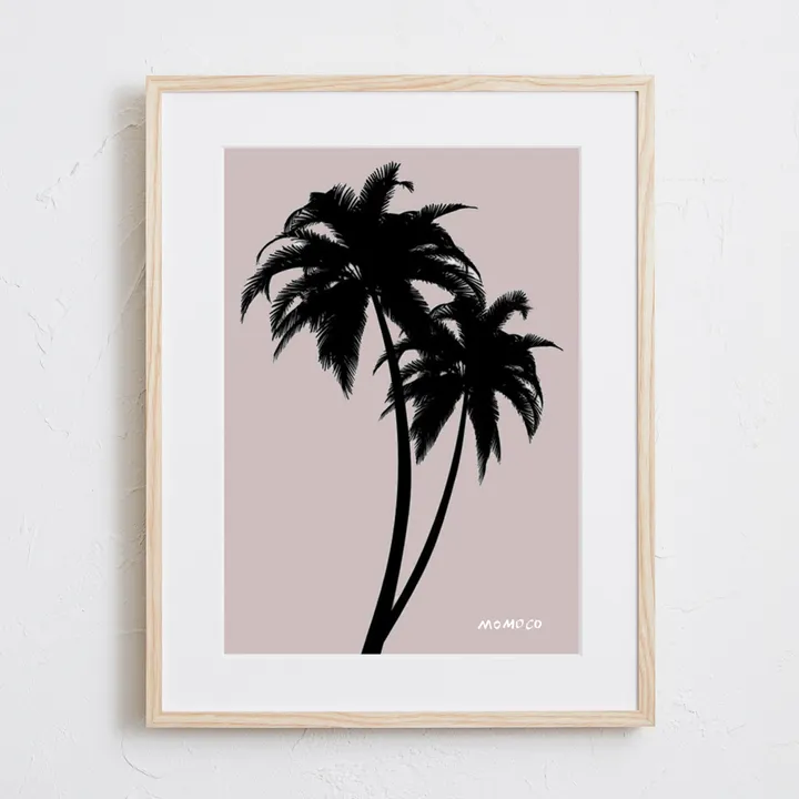 【現代アートポスター】ヤシの木 くすみピンク 大人可愛い A4(S) フレームセット:無垢 30.4×39.4cm