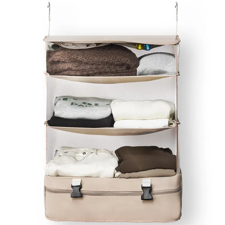 圧縮吊り下げトラベルポーチ XLサイズ ミルクティーベージュ