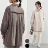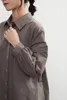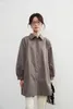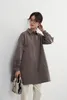 KNXC508-後タック長袖チュニックシャツジャケット・シャカシャカ素材ポケット付き MOCHA/M
