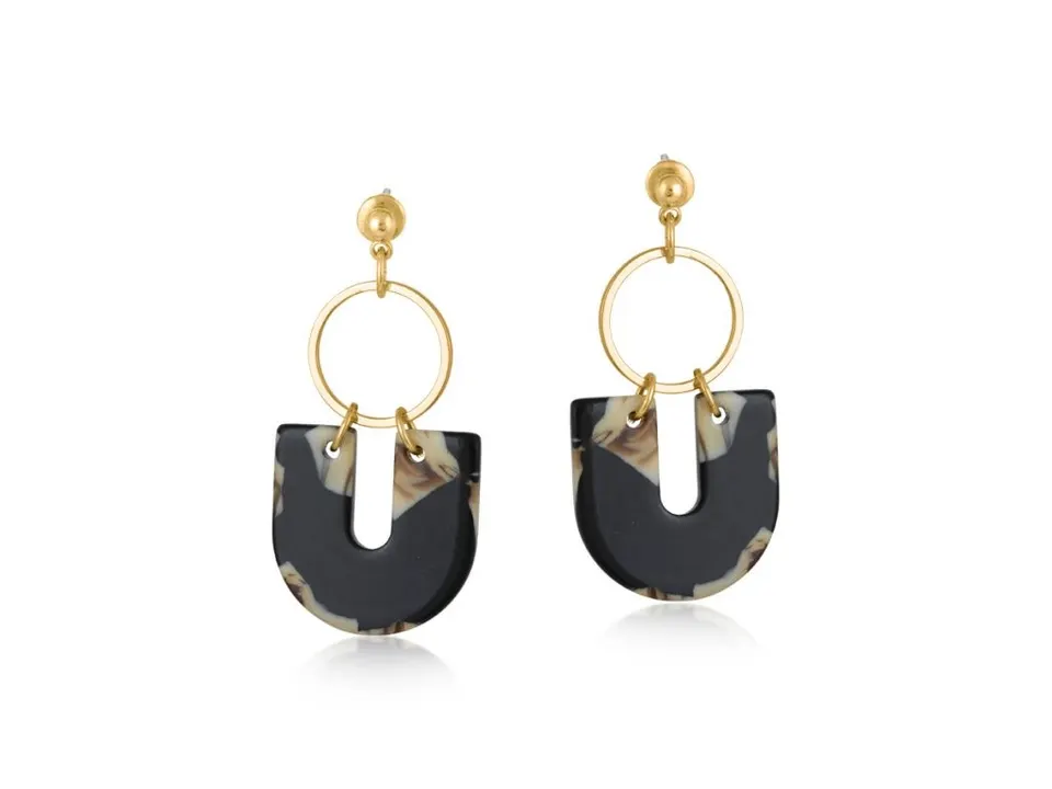 2971 Sophia ジオメトリック メタル&レジン ダングルピアス BEIGE/BROWN/BLACK