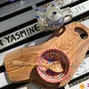 サイズ:約43.5×16~21×厚み2.2cmcm 重さ1600g 曲がったカタチがユニーク *人気のオリーブの木の超かっこいいカッティングボードシリーズです。北アフリカの雨があまり降らない大地で400年以上生き抜いたオリーブの木の圧倒的な木目が特徴「大自然のアート」 *オリーブの木 特有の滑らかな形、木目の表情は大自然の恵みの力をそのまま残した生命力溢れる絶品です。これぞ北アフリカの大自然アート、長い年月の間、厳しい自然の中を何百年も生き抜き育った結果が表れています。この作品には圧倒的な「見ごたえ」があります。目にするたびに喜びと元気が湧き出ることでしょう!!北アフリカではオリーブの木は1000年近くも生きる不死身「聖なる木」とされます。 *400年前後の古木を使っているためモノによっては古木ならではの自然な亀裂がございます。 *キッチンで使ったり、テーブルウェアとして使ったり、はたまたインテリアとしてその存在感を発揮させたりと楽しみ方は無限大。程よい大きさは、卓上でパンやチーズ、オードブルやフルーツを盛り付けるのにも最適です。生ハムなどの盛り付けにも。そのままお皿としてご利用いただくこともできます。 *食卓以外でもアクセサリーや陶器などディスプレイにも素材力を発揮し、お料理だけでなくさまざまな小物のステージを演出してくれるでしょう。 *地中海の恵みをたっぷり浴びたオリーブの木は、ゆっくりと成長するので大きな木になるには何百年とかかります。その為、木の密度は高くなり、硬く傷つきにくくなります。色が変わってきたらオリーブオイルを塗ってください。長く使っていただける一品です。 *写真で細かくご案内していますが、400年以上の古木という材質上、ご案内するボードは一点一点、異なる木目や節があり、色も各々違います。 また、細かい傷や表面の微妙な凹凸、磨いた跡や虫食いの跡などがある場合もございます。これらは不良品扱いとはなりませんので、予めご理解の上お買い求めください。 ※商品は1点もので、複数サイトに掲載しております。お取引が成立となりましても、先に他のサイトで売れているということもあり、その場合は注文キャンセルとさせていただく場合もまれにございますので、予めご了承くださいませ。