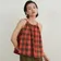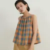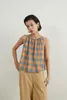 KNNT328コットン100%チェックキャミソール ORANGESKY/FREE