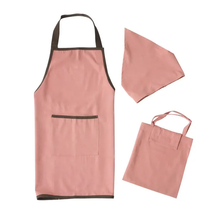 子供用エプロン3点セット M ピンクブラウン