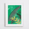 【現代アートポスター】ボタニカル 観葉植物 ペインティング グリーンGreen イラスト A4(S) フレームセット:白 29.4×38.4cm