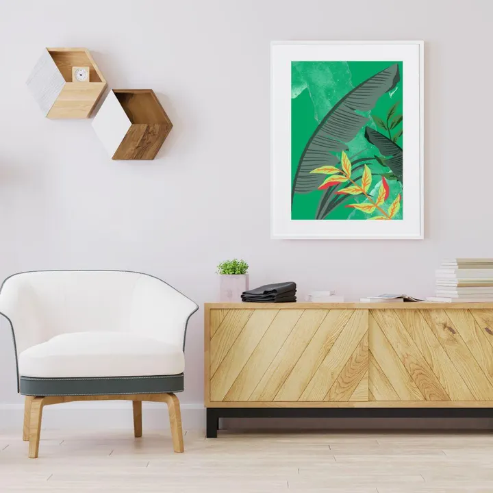 アーティスト -PROFILE- MOMOCO(モモコ) 「色」をこよなく愛する画家、ライブペインター。 躍動感あるアートにも関わらず、服を一切汚さず短時間で音楽と同時に描き上げる。そのパフォーマンスと巨大アートは観る人を魅了する。 前職は某有名ファッションブランドにてデザイナーとして活躍。その経験の中で養われた「色とデザイン」の絶妙なバランスを活かしつつ、トレンドを取り入れ進化し続けるアートを目指す!国内外問わず、精力的にアートと向き合い発信を続けている。 【作品について】 水をやる必要がない!観葉植物を壁に 緑色が印象的でシンプルな作品はアート購入初心者さんにもおすすめ ナチュラルな部屋、BOHOインテリア好きにも 作品名:アーバンマジックⅣ 手法:デジタル、イラスト ペーパー:高品質半光沢紙 マットカラー:白 マット*:DXホワイト芯 100%バージンパルプ/PH7・中性紙(2mm厚) ※全てのアートにマットがつきます フレームカラー:黒、白、無垢(3種類から選択) ※マット付のため通常とはフレームサイズが異なる規格となります。 【マット*とは?】 アートポスターの周りに挟んだ厚紙の事。 マットを使わない時に比べ余白により広がりが生まれ、作品の新たな一面を引き出せ作品の見栄えがグッと良くなります。また、額縁のガラス面と作品が直接触れたままにしておくと、くっついて作品を傷つけることがあります。マットを使用することでガラスと作品の間に空間ができ、作品を保護することができます。ブランドコンセプトにより全てのアートにマットがつきます。 ー ファッションのようにアートを ー 私達が掲げるコンセプトです! 毎日着替えるファッションの様に、アートも気軽に飾り変えて欲しい... 一旦飾り終えたアートにも光を当ててほしい... ポスター単体、またはリピートで中身だけのポスターを購入された方に"専用のハンガー"をセットでお届け。 「今までに無い!新しいアートの飾り方を提案」 飾る事がなくなった前のアートをハンガーにかけて洋服と一緒にかけてもらう。 その日の気分や、モチベーションですぐに取り換えられる様に。 もちろん、魅せる収納としても今までにないおすすめの飾り方です。