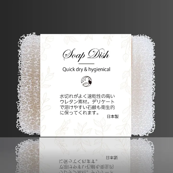 石鹸を長持ちさせるソープディッシュは、通気性がよくヌメリを起こしにくいのでデリケートな石鹸を長持ちさせ使いやすいのが特徴です。 衛生的な速乾スポンジとトレー付で、シンプルな北欧デザインが 場所を選ばずインテリアに馴染みます。