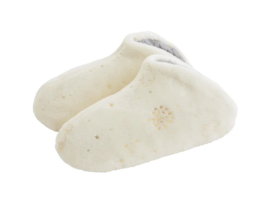 なめらかな手触りのフランネルとあたたかなボアで、うっとりするような夢見心地に。 厚みのあるフランネルとゴールドの箔プリントが人気の冬の定番防寒シリーズです。 今年はキルティングのようなライン模様を忍ばせてみたり、例年よりも柄の密度が高く、キラキラした箔プリントの特徴がより分かりやすくなっています。 スリッパやルームシューズより包容感のあるルームブーツは、冷えを感じやすいかたにおすすめです。 足の甲までしっかり覆う形状のため暖かさを逃しにくく、深々と冷え込む座り作業中の辛さを和らげます。 また、履き口が広く、着脱がスムーズな点も人気です。 寒がりのあの人へプレゼントするときっと喜ばれますよ。