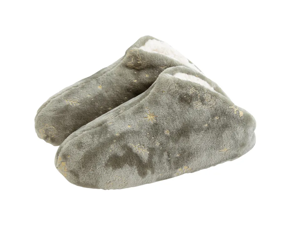 なめらかな手触りのフランネルとあたたかなボアで、うっとりするような夢見心地に。 厚みのあるフランネルとゴールドの箔プリントが人気の冬の定番防寒シリーズです。 今年はキルティングのようなライン模様を忍ばせてみたり、例年よりも柄の密度が高く、キラキラした箔プリントの特徴がより分かりやすくなっています。 スリッパやルームシューズより包容感のあるルームブーツは、冷えを感じやすいかたにおすすめです。 足の甲までしっかり覆う形状のため暖かさを逃しにくく、深々と冷え込む座り作業中の辛さを和らげます。 また、履き口が広く、着脱がスムーズな点も人気です。 寒がりのあの人へプレゼントするときっと喜ばれますよ。