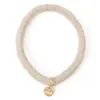 髪を優しく結びたい方におすすめの、カジュアルでキレイめな印象のヘアゴム 「アイボリー」は、冬の寒い日にあわせたい優しくクリーミーなカラー。真っ白なセーターの差し色として、真っ黒なコートと合わせて2トーンにも。落ち着いた色が多くなる冬の装いに、華を添えます。 短い毛足が特徴的なカジュアルでキレイめな印象のヘアゴムです。モコモコの繊維が優しく髪をキャッチしてくれるので、ゆるく結んでも取れにくいヘアゴムです。モコモコ部分は優しく滑らかな仕上がりなので、髪に絡まる心配もありません。 髪を優しくまとめたい方や、しっかり結んだ際、髪にヘアゴムの跡が残ってしまうのが気になる方(※)はぜひ試してみてください。緩めのお団子やルーズヘアにもおすすめです。 ※髪に跡になりにくいようお作りしておりますが、効果には個人差があります。 オリジナルチャーム付きなので、手首につけても素敵にキラリ。うっかり机に置き忘れてもひと目で自分のものと分かります。 1本1本、手作業でゴムリングの接着加工をしています。金属のパーツでゴムをかしめているヘアゴムの場合は、髪の毛が引っかかると切れてしまいますが、当社の製品は、つなぎ目がほとんど分からず、髪の毛にも優しいです。 直径:約48mm、太さ:約6mm、プレートの直径:約8mm 材質:アクリル・天然ゴム・真鍮 日本製