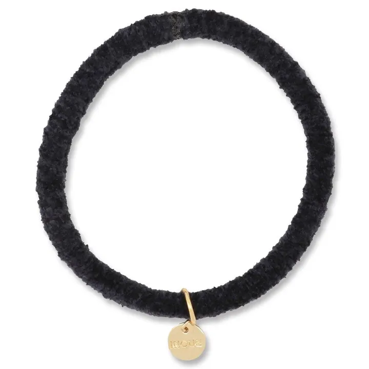 髪を優しく結びたい方におすすめの、カジュアルでキレイめな印象のヘアゴム 「ブラック」はオンオフ問わず、どんな服にも迷わず付けられる万能カラー。 短い毛足が特徴的なカジュアルでキレイめな印象のヘアゴムです。モコモコの繊維が優しく髪をキャッチしてくれるので、ゆるく結んでも取れにくいヘアゴムです。モコモコ部分は優しく滑らかな仕上がりなので、髪に絡まる心配もありません。 髪を優しくまとめたい方や、しっかり結んだ際、髪にヘアゴムの跡が残ってしまうのが気になる方(※)はぜひ試してみてください。緩めのお団子やルーズヘアにもおすすめです。 ※髪に跡になりにくいようお作りしておりますが、効果には個人差があります。 オリジナルチャーム付きなので、手首につけても素敵にキラリ。うっかり机に置き忘れてもひと目で自分のものと分かります。 1本1本、手作業でゴムリングの接着加工をしています。金属のパーツでゴムをかしめているヘアゴムの場合は、髪の毛が引っかかると切れてしまいますが、当社の製品は、つなぎ目がほとんど分からず、髪の毛にも優しいです。 直径:約48mm、太さ:約6mm、プレートの直径:約8mm 材質:アクリル・天然ゴム・真鍮 日本製