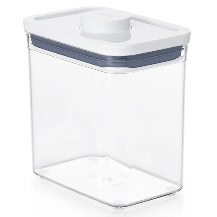 "魅せる収納"で人気のポップコンテナ フタの真ん中についているボタンを押すだけで開閉ができ、ポップアップしたボタンはそのままハンドルとして使えるドライフード用の保存容器です。調理中や、片手がふさがっていても、ワンタッチ操作で密閉が可能です。 フタの形はミニスクエア、スモールスクエア、ビッグスクエア、スリムレクタングル、レクタングルの5種類。高さは小さいほうから順にミニ、ショート、ミディアム、トールの4種類です。 高さはミニを基準にミニの2倍がショート、3倍がミディアム、4倍がトールと全てのフタの形に共通しているので、カウンターや戸棚の中でスッキリ整理整頓ができます。サイズ違いでもきれいにスタッキング(積み重ねて収納)ができます。 スクエア形状の容器は省スペースで収納できるだけでなく、掴みやすく、角から中身を注ぎやすいのも特徴です。毎日使うものだからこそ、使い勝手の良さを追求した保存容器です。 また、ポップコンテナに合わせてお使いいただける各種アクセサリーもあります(別売り)。フタの裏に装着して収納できるので、別にスプーンを用意したり、コンテナの中で埋まって見えなくなってしまうこともありません。 ポップコンテナは全部で18サイズありますので、入れるものの量や形にあわせてお選びください。フタは内側のパーツを取り外してお手入れが可能です。ボタンのついているフタ以外は漂白剤がご使用いただけます。すべてのパーツは食器洗い乾燥機(低温設定)がご使用いただけます。 適合アクセサリータイプ: ポップスクープ / コーヒースクープ / 粉ふるいスクープ / ライスカップ / シュガーキーパー