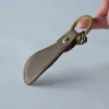 ■くせになるしなりぐあい■ 芯にも革素材を使った、しなる靴べらキーホルダー ■作品説明 中に特殊な方法を用いて硬くしたタンニンなめしの革を使い、表革で挟み込んでいます。ほどよい硬さでしなるため、金属の靴ベラとはまた違った使い心地でお楽しみいただけます。 革は姫路のタンナーさん(製革業者)に直接お願いをして作ってもらった aTelier Tのオリジナルです。使うほどに風合いが出るよう、タンニンとオイルを入れてもらっております。 大きい二重リング金具は真鍮生地です。革とともに使うほどに経年変化特有のアンティークな雰囲気が出てきます。 ■素材 表革・裏革:牛革(姫路産) 芯材:牛床革 リング:真鍮生地 小リング(3個):真鍮メッキ ■サイズ (リング含む全長) 縦 約11cm × 横 約5cm ========================================================= ● 天然素材である本革を使用しています。シワ・傷・色ムラ・トラ等がある場合がございますが、本革が本来持っている特性ですのでご了承ください。 ● カラーはロットにより多少色が異なる場合がございます。掲載する写真映りや閲覧を頂く端末によっても色の見え方が異なることがあるかもしれませんがご了承ください。 ● 水に濡れますとシミの原因になります。摩擦や水濡れにより衣類との摩擦で色移りしますのでご注意下さい。また保管される際は風通しのよい場所でお願いいたします。色移りしやすいものとは避けてください。 ● 真鍮金具は経年変化をしやすく、色味や光沢などの個体差が大きい素材です。金具取り付け前はひとつひとつを検品をして、手作業で磨きこんでシミやくすみを取り除き、できるだけ個体差が少なくなるよう努めておりますが、それでも多少色味や光沢感などがロットにより異なる可能性があることご了承ください。 =========================================================