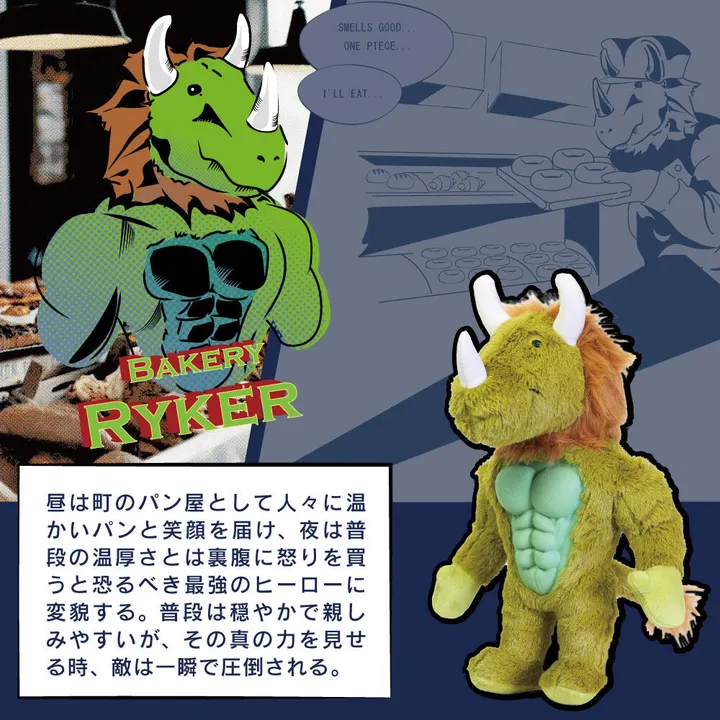 ■RYKER 昼は町のパン屋として人々に温かいパンと笑顔を届け、夜は普段の温厚さとは裏腹に怒りを買うと恐るべき最強のヒーローに変貌する。普段は穏やかで親しみやすいが、その真の力を見せる時、敵は一瞬で圧倒される。
