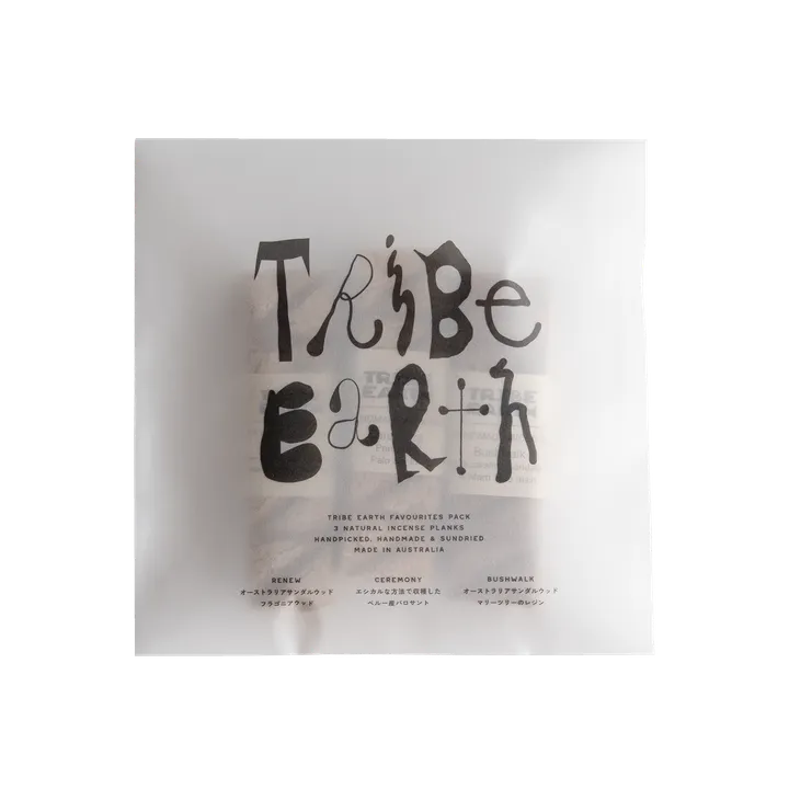 このセットには、Tribe Earthで特に人気のある3つの香り「Renew」「Ceremony」「Bushwalk」が含まれています。気分を高める香り、穏やかな香り、落ち着いた香りが揃っており、ナチュラルインセンスの魅力をたっぷりと味わうことができるお得なセットです。 バー状のインセンスが3本入っており、それぞれのインセンスは10個ほどの小さいピースに砕くことができます。1ピースで約30分間の燃焼時間です。 Tribe Earth のお香は、オーストラリア産のサンダルウッドがベースとなり、そのほかにオーストラリアの大自然の中から手摘みされた自然素材をブレンドし、サステナブルな製法で丁寧に手作りされています。このセットの中に入っている「Ceremony」は、100% ペルー北部産のパロサントを使用しています。このパロサントはダイレクトトレードで仕入れており、持続可能な森林再生と自然と共生するかたちであり責任のある調達を支援するため、厳しい基準に基づいて管理された地元の農家と提携しています。 セットに含まれている香り3種 Renew(西オーストラリアのサンダルウッド、フラゴニアの木) 爽やかで柑橘系のようなハーブの香りが調和したブレンド。フラゴニアの明るく軽やかなトップノートに、サンダルウッドのなめらかで甘い温かみが重なります。 Bushwalk(西オーストラリアのサンダルウッド、マリーツリーの樹脂) 大地を感じさせる落ち着いた深さのある香り。サンダルウッドの滑らかで深みのある香りと、マリーツリー樹脂のほのかにスパイシーでアンバーのような豊かなノートが調和しています。 Ceremony(100%ペルー産のパロサント) 純粋無垢なパロサントからは、清涼感のあるミントのようなスッキリとする香りに、神聖な木特有の甘く樹脂のような雰囲気が加わったリラックスできる香り。 使用方法 刻まれた線に沿って、ひとかけらを折り取ります。お香に火をつけ、5~10秒間燃焼させた後、軽く吹き消します。耐熱性で燃えにくい場所に置き、香り立つ煙が広がるのをお楽しみください。