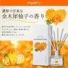 甘い華やかな金木犀の香りにフレッシュな柚子の香りを閉じ込めたイメージのリードディフューザー。 フィトンチッド(ヒノキ精油)、グロブル®(ユーカリ精油)などの植物由来消臭成分がニオイの原因に働きかけお部屋を快適な空間に。置き場所を選ばないコンパクトサイズでも香り長持ち。 金木犀と柚子の香りに包まれながら、リラックスできるひとときを。 芳香持続期間は約2〜2.5ヶ月(使用環境や季節によって異なります)