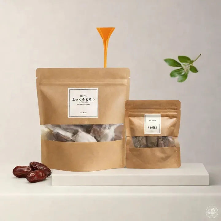 7DATES 14.5cm×11.5cm×2.9㎝ 約50g ふっくらとろり7DATES 130×130(100)×65mm 約100g