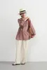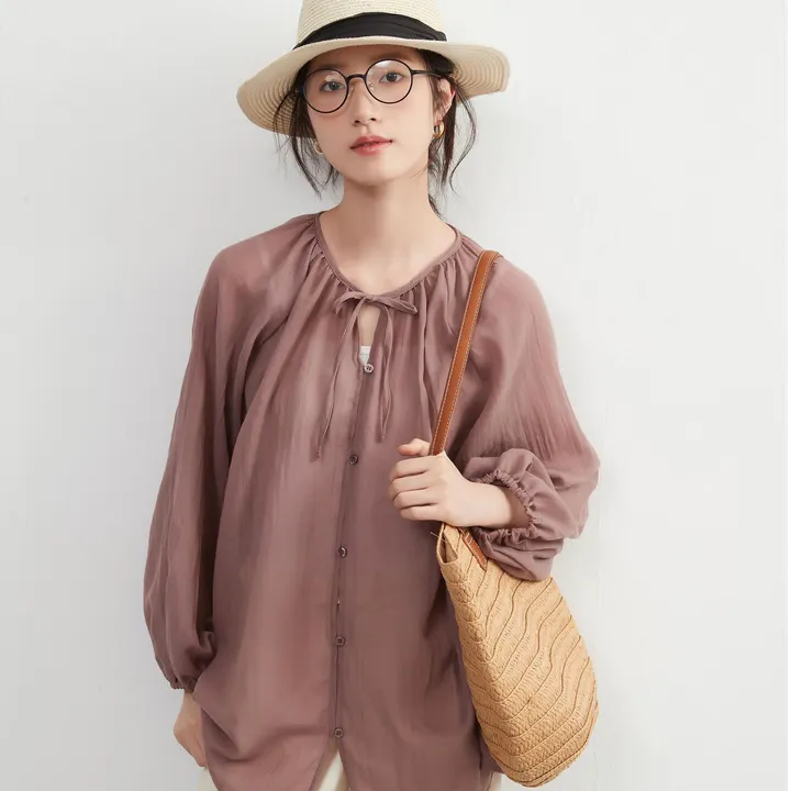 特徴 このシアー綿混長袖ギャザーブラウスは、軽やかな素材とナチュラルなデザインが特徴です。ギャザーが施されており、立体感と動きのあるシルエットを演出します。陽射し対策や冷房対策にも優れており、オフィスや外出時に便利です。 生地の特徴 高品質な綿混素材を使用しており、通気性が良く、肌触りも柔らかです。透け感のある軽やかな生地は、夏でも涼しく快適に着用できます。薄手でありながらも耐久性があり、シワになりにくく、お手入れが簡単です。 コーディネートの提案 このブラウスは、薄手カーディガンや軽い羽織りとしても活躍します。例えば、シンプルなタンクトップやキャミソールの上に羽織ることで、涼しげでありながらも上品なコーディネートが完成します。ボトムスには、スリムフィットのパンツやスカートを合わせるとバランス良く仕上がります。 単位(cm)モデル身長165cm サイズ FREE  着丈 70 バスト 132 裄丈 72 素材:ポリエステル80% 綿20% 中国製 透け感:あり 生地の厚さ:薄い 光沢感:なし 裏地:なし 家庭洗濯:可能(ネット使用) 【注意点】 ※撮影商品はサンプルの為、実際の仕様と異なる場合がございます。 ※画像の商品は光の照射や角度、お使いのモニター環境により、実物と色味が異なる場合がございます。スタジオ物撮りの画像が実物の色味に一番近くなっております。 ※予約商品の場合、お届け予定はあくまでも目安となります。 生産の都合上、お届け時期がずれる場合がございますので、あらかじめご了承ください。 ※表記サイズは商品の実寸です。 ※布製品の特性上、サイズ表の実寸法は多少の誤差が生じる場合がございますので、予めご了承ください。