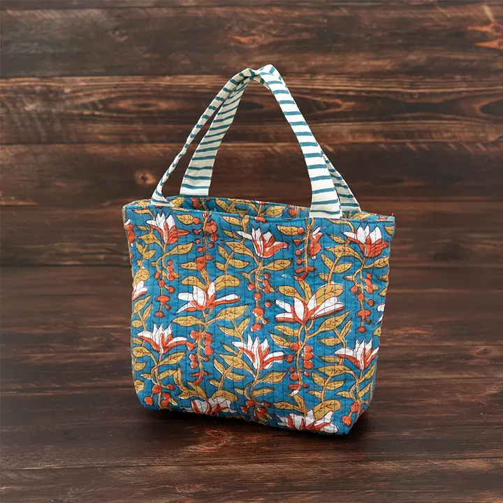 「カリーノ」は「かわいらしい」という意味。心ときめく配色と素朴な花柄が毎日を彩ります。 ちょっとしたお出かけやお散歩、お弁当入れにぴったりなサイズのトートバッグ。 柔らかいキルトの生地とブロックプリントの暖かみのある柄に癒されます。 内側ポケット付。 「ブロックプリント」は、インドの伝統的な技法で、職人が木版を使い、一つ一つ手作業で生地にプリントを施した布です。 ※表示数量を超える在庫や、詳しい納期につきましてはメッセージよりお問い合わせください。