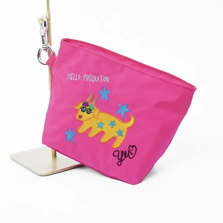 【商品説明】アーティストYUのパスキートンフレンズの刺繍がとてもキュートです。 ▲お取り扱いの注意 本製品は濃色、刺繍糸の色落ちすることがあります。 洗濯は単独で洗って下さい。 【サイズ詳細】 高さ:16cm 横幅:25cm まち:9cm 【素材】 本体:ポリエステル 【中国製】 キュートなPASQUITONポーチは、お子様から大人まで愛される可愛いキャラクターが目を引くポーチです。洗濯することができるので、気軽にお手入れができます。ファッションアイテムとしてだけでなく、サイドにクリップがついていますのでパンツのベルト通しにつけたり、他のbagにつけたり、機能性も備えています。 pasquitonの商品は、厳しい品質管理のもと、一つ一つ手作業で作られ、生産者も楽しみながら製作ししております。 あなたにも、この可愛らしいポーチで遊びやレジャーを楽しんでほしい。ぜひ、お手元にお迎えください。 可愛いPASQUITON商品は、目がキラキラ輝くエモーショナルなデザインで、持っているだけで自分も、周りの人たちもハッピーにさせてくれますよ。