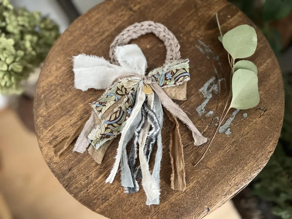 裂き布のシュシュ 裂き布が奏でる 心地よさ One of a kind この出逢いに serendipityを感じて 身につけ 髪に添え 心豊かに 胸高鳴る トキメク今日を あなたに届けます ・・・ 裂き布が揺れるシュシュ。 なびく髪に裂き布が心地よく馴染みます。 コットン、リネンなどやさしい素材を用い、心地よさとナチュラル感、日々手に取りたいアクセサリーを追求しました。 長く身につけたいものは気取らず飾り気のないもの。 使うほどに風合いを育てていくことで使い手の心根に宿るものをテーマにしています。 様々な裂き布が絶妙に奏でるやさしい風合いをぜひお楽しみいただきたい一品です。 中にゴムを入れていますのでそのまま軽く髪をまとめるのはもちろん、手首につけてブレスレットとしてもお使いいただけます。 暮らしに、日常に、さりげなく寄り添うシュシュはご自分用としても、贈り物としてもtoromeco商品の中で最も安定してリピートいただいている商品です。 長くご使用いただくためには、先に別のヘアゴムで髪を結んだ上から本商品をおつけいただくことをお勧めしています。 毎日のアクセサリーとして、お気に入りをお好みのスタイルでお楽しみいただけます。 モニター環境や撮影状況で実際のお色と多少異なるように見えることがありますがご了承ください。