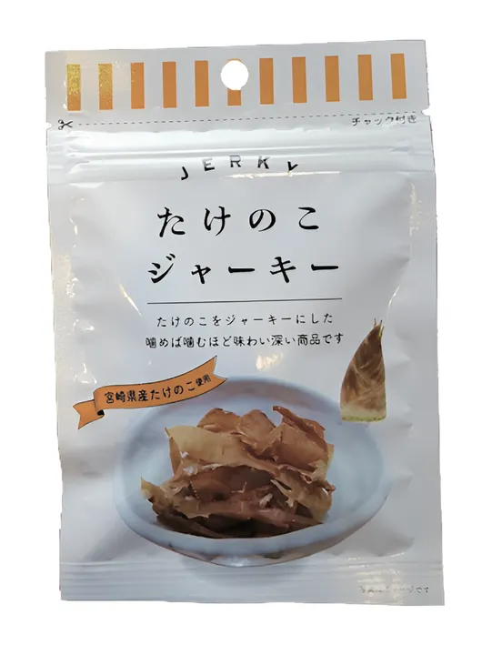 宮崎県産のたけのこを使用。 かつお風味だし醤油で味付けをして、ジャーキーに仕上げました。 おつまみ、お茶受け、調理に幅広くご利用できます。
