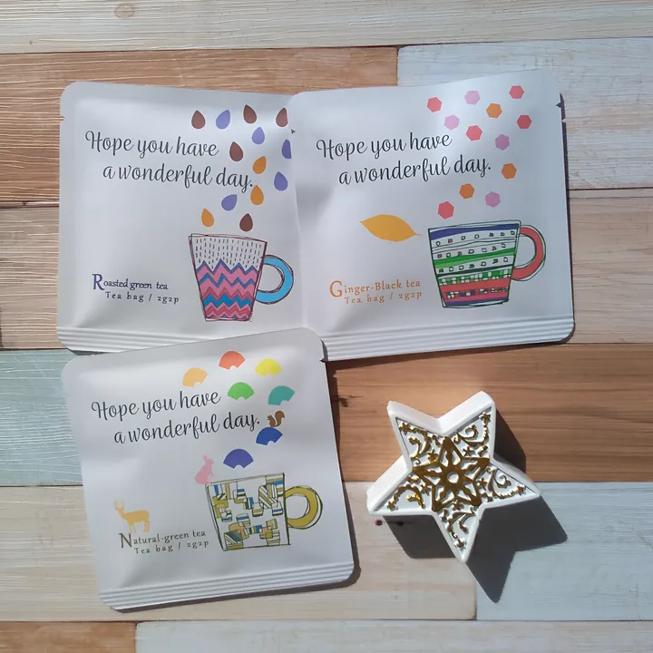 あなたの気分に、あなたの日常に、優しく寄り添うティーバッグシリーズ 一杯のお茶が、何気ない1日を素敵なものにしてくれるはず Hope you have a wonderful day. ■Take a good rest■ ・Roasted green tea 2g2p ・Natural-green tea 2g2p ・Ginger-Black tea 2g2p 'ゆっくり休んでね'  忙しい日々の中 少し空いた時間に カップに一つティーバッグを入れて 少し自分のために Take a good rest. カフェインレスなほうじ茶、 化学肥料や農薬不使用の自然栽培茶、 ポカポカ温まるジンジャーティー、 身体を休ませてくれるティーバッグ3袋のセット。 ギフトやお試し、いろいろなお茶を楽しみたい方にもおすすめです。 ■ おいしい入れ方 カップにティーバッグを 1つ入れてください。 カップにお湯を注ぎ1〜2分待ちます。 ティーバッグを数回上下させ きれいな色になったら飲み頃です。