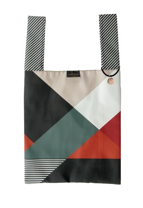 レジ袋有料化から数年、もはや必需品のエコバッグ。 そろそろ買い替え時期ではありませんか? モダンアートのような大胆な絵柄は店頭に陳列したときのインパクトが印象的でありながら、大人っぽい落ち着いた配色で、どなたにもお選びいただける雰囲気となっています。 裏地は保冷仕様にしながら、コンパクトに収納できる工夫を考えました。 ハンドルに付属しているゴムバンドを使って小さく折り畳んだ本体をまとめて留めるだけ。 裏地は保冷仕様ですが口はオープンなバッグですので、保冷効果はそれほどございません。 ちょっとスーパーやコンビニでお買い物の時に活躍する、いつもお出かけバッグに入れておくのにちょうどよい、レジ袋サイズです。 汚れたらサッと拭くだけ。 丈夫でお手入れしやすく長くお使いいただけます。 メッシュ素材の内ポケット付き