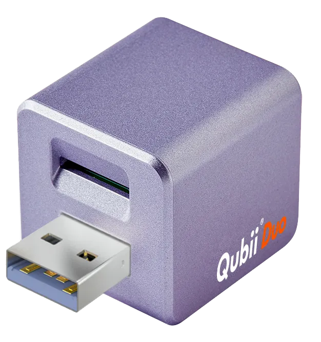 【Qubii Duoがあれば写真取り放題】 寝る前にスマホ充電するだけでスマホの写真や動画を自動バックアップ! Qubiiがあれば、スマホの容量不足には困らず、写真を気兼ねなく取り放題! 使いやすくて高速転送。簡単操作で手軽にスマホの写真をパソコンにデータ移行することも可能。 【保存できるもの】 写真、動画、音楽、連絡先、SNS(Instagram、Facebookの画像など)、ファイルアプリのデータ ※OSごとに保存できる内容は異なります。 【iOSとAndroid両用】 iPhoneからAndroidへ機種変更した場合や、異なる機種を使っているご家族ともQubiiが使用できるようになりました。 PCを介さずにスマホのデータを移行・共有できるのでより便利に。 【容量不足解消】 PCいらずで空き容量を確保。 カード入れ替えで自由に容量を増やせる!各メーカーのmicroSDカードに対応します。 オフラインでバックアップするのでデータ漏洩の心配もありません。 【microSDロック機能搭載】 ロックすると、自分のスマホ以外ではカードの認識自体ができなくなります。 大事なデータや秘密のファイルの保存に最適! ※microSD別売 仕様 □カラー:ホワイト/パープル □インターフェース:USB-Aコネクタ メス×1、USB-Aコネクタ オス×1 □スロット:microSDスロット×1 □生産地:台湾 □取扱説明書:日本語取扱説明書あり □保証期間:ご購入日より2年 □対応OS:iOS14以降/Android6.0以降 対応機種 iPhone14 シリーズ, iPhone13 シリーズ, iPhone12 シリーズ, iPhone SE2, iPhone 11 シリーズ, iPhone Xシリーズ, iPhone8 シリーズ, iPhone7 シリーズ, iPhone SE, iPhone6 シリーズ, iPhone 5s iPad (第6世代), iPad (第5世代) iPad Air (第3世代), iPad Air (第2世代), iPad Air , iPad mini (第5世代), iPad mini (第4世代) iPad Pro (12.9-inch 第3世代), iPad Pro (11-inch), iPad Pro (12.9-inch 第2世代), iPad Pro (10.5-inch), iPad Pro (12.9-inch), iPad Pro (9.7-inch) ・Android機種に対応 □対応microSD容量 上限なし ※microSDのファイル形式はexFATのみ対応しています。