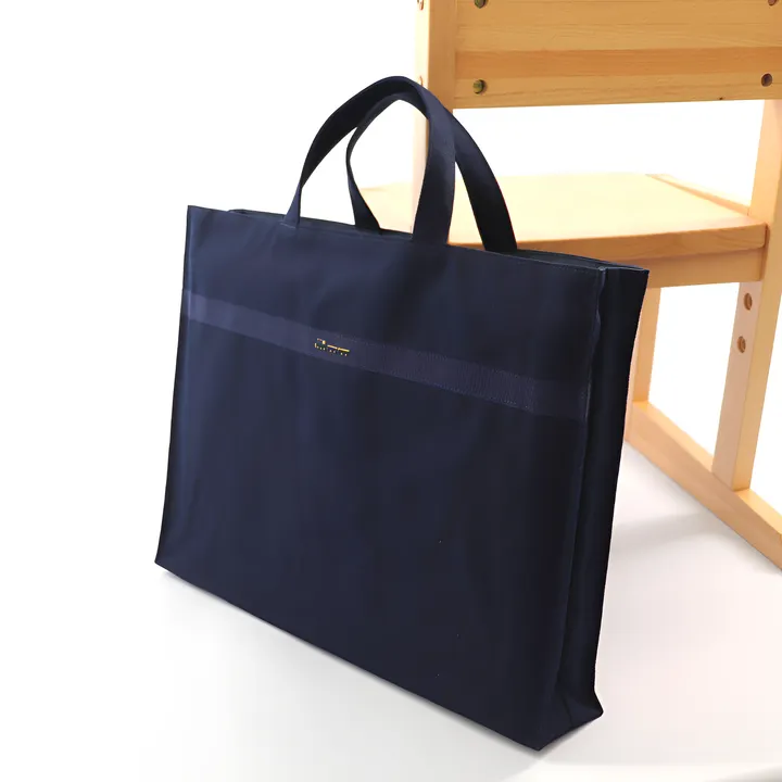 十分な収納力と落ち着いたデザインの布製マチ付きレッスンバッグ。 グログランテープの上にワンポイントの刺繍をあしらったシンプルで上品なネイビーカラーのレッスンバッグです。 横マチが7cmあり、B4サイズのスケッチブックも綺麗におさまります。 入園・入学・おけいこ用・お教室用・お受験本番など様々なシーンで安心してお使い頂けます。 表地には厚手綿素材のオックス地を使用し、裏地には物の出し入れがしやすいようにナイロン地を使用しています。 内側のポケットはハンカチとティッシュなどが分けて入れられるような大きめサイズ。お名前が書けるタグ付き。 刺繍のデザインは2種類 ブーケ柄とトレイン柄。 ●小さなワンポイント刺繍がさりげなく、園児~小学校高学年になっても永くご使用頂ける落ち着いたデザインです。 ●ご購入されたお客様の声(一部抜粋) ・ワンポイントの刺繍が上品で可愛らしいですが、小さめなので、学年が上がっても長く使い続けられそうです。小学三年生の子どもも気に入っています。  また布製の生地ですがしっかりしていて丈夫そうです。 ・シンプルすぎるかなと思いましたが、実際届いた商品は上品で本当に使いやすくお気に入りです。  サイズ感もちょうどよく制服にぴったりでした。 ・小さなブーケ柄がお品良く、お稽古事や幼稚園、これからの小学校生活にも活躍出来るお品で親子でとても気に入っています。 ・内側がナイロンなので子供がしまいやすいと思います。可愛いので子供が気に入っていました。刺繍もさりげない感じで良かったです。