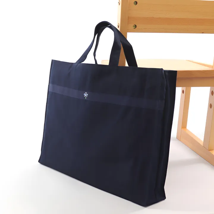 マチ付きレッスンバッグ ワンポイント刺繍入り 紺地 B4サイズ ブーケ