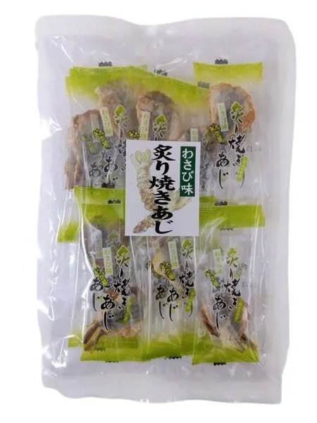 小さなあじを香ばしく焼き上げ、わさび味に仕上げました。