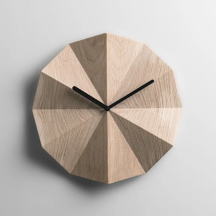 ただ時を刻むだけではなく、周囲の光を取り込むことで感覚的に時間を教えてくれる温かみのある掛け時計。 影を利用して時間を伝える日時計からインスピレーションを得てデザイン。表面の起伏が時間の経過を示し、周囲の光と相互作用することにより様々な色のトーン(表情)が生まれます。 ポーランドで製造され、デンマークで組み立てられたこのデルタクロックは、目新しく面白くもありつつも、本質に立ち返り、馴染みの深い時計との触れ合い方を改めて教えてくれます。 天然素材そのままに木目を活かしたオーク材と、ブラック、ホワイト。オーク材は時計の針が黒と白の2色から選べます。ブラックとホワイトはマットな質感で大変落ち着いた風合いです。