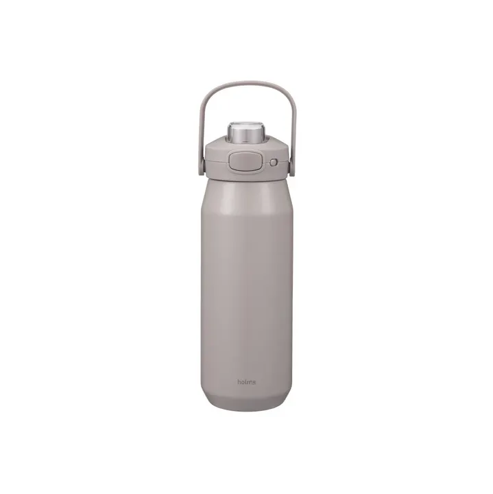 【holms ワンタッチアクティブボトル780 / 1000】 今回の新作ボトルでは、アクティブなライフスタイルにフィットする使いやすさと、ブランドの持ち味である洗練されたビジュアルが融合しました。シンプルで落ち着いたグレーとベージュの2色展開で、性別やシーンを問わず持ちやすいカラーリングとなっています。通勤やジム、旅行、アウトドアなど、あらゆる場面で自然に手に取りたくなるデザインと機能性が魅力です。 【ワンタッチ開閉で飲みたい瞬間にすぐ飲める】 キャップを回す必要がなく、ボタンを押すだけのワンタッチ設計。片手で簡単に開閉できるので、忙しいときや運動中にも便利です。フタは開けた状態でしっかり固定されるため飲むときに邪魔にならず、誤作動防止のロック付きでカバンの中での液漏れも防ぎます。 【EVA素材の柔らかハンドルで持ち運びも快適に】 ボトルの上部には手になじむEVA樹脂製のハンドルを搭載。満タン時でも持ちやすく、通勤・通学・スポーツ・アウトドアなど、移動時の利便性を高めてくれます。 【手にフィットする滑りにくいボディ】 本体表面には粉体塗装を施しており、手になじむさらりとした質感で滑りにくく、傾ける動作の中でもしっかりと握りやすい設計です。 【真空二重構造でしっかり保温・保冷】 冷たいドリンクは冷たく、温かい飲み物は長時間あたたかくキープできる真空二重構造を採用。暑い夏にも頼れる使い勝手の良い保冷ボトルです。 【製品情報】 商品名: holms ワンタッチアクティブボトル780 サイズ: W83×D94×H244mm(ハンドルを除く) 重量: 359g 実容量: 0.78L 適正容量: 0.715L 材料の種類: [内びん]ステンレス鋼、[胴部]ステンレス鋼(アクリル樹脂塗装)、[フタユニット]ポリプロピレン・コポリエステル樹脂、[ボタン・ロック]ABS樹脂、[ハンドル]EVA樹脂、[パッキン]シリコーンゴム 原産国: 中国 【製品情報】 商品名: holms ワンタッチアクティブボトル1000 サイズ: W85×D97×H276mm(ハンドルを除く) 重量: 420g 実容量: 1.0L 適正容量: 0.93L 材料の種類: [内びん]ステンレス鋼、[胴部]ステンレス鋼(アクリル樹脂塗装)、[フタユニット]ポリプロピレン・コポリエステル樹脂、[ボタン・ロック]ABS樹脂、[ハンドル]EVA樹脂、[パッキン]シリコーンゴム 原産国: 中国