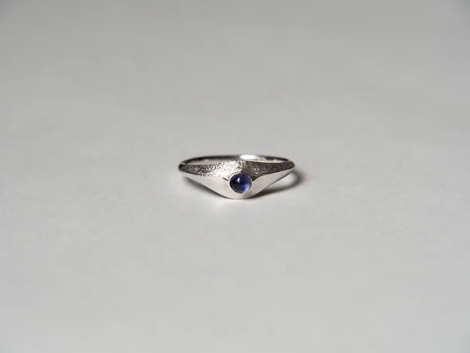 ・コンセプト 「心の内に秘めた光を引き出し、身に纏う人そのものを輝かせたい。」 人は誰しも、心にきらりと輝く光を持っています。その光は、人それぞれに形が異なるからこそ美しく、素晴らしい。Rinnは、心に宿る光に寄り添うように、身につける人そのものを輝かせるジュエリーを提供しております。 「毎日身につけても壊れにくく、時を重ねるとともに肌に馴染んでいくようなジュエリーを」 Rinnは身につける人の肌と生活に馴染むジュエリーを提供しております。 ・デザイン 「他になく、永く愛されるデザインを。」 ジュエリーのデザインは、日常に溶け込んだささやかな美しさから生まれます。 例えば揺らめく布の柔らかさに触れた時や、朝陽が昇る瞬間に霞んでいたものが透き通って見えた時、感じ取った自然の美しさがジュエリーの形になっていきます。 そこへクラシカルな要素を取り入れることで、"Rinnにしかないデザイン"を意識いたしました。 お客様の生活に寄り添い続けるために、永く愛され続けるデザインにこだわりました。 そこには「親から子へと、時代を超えて受け継がれていって欲しい」という想いも込めております。どんな人にもどんな装いにも、しっくりと馴染み続けていくよう願いを込めてジュエリーを製作しております。 ・アイテム 2種類のテクスチャを用いて、時と共に移り行く空気感を表現しました。中央のアイオライトとシルバーカラーの組み合わせがクールな印象を演出します。