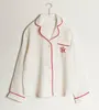 レディース・リネン100% オフホワイトのパジャマ(上・下)パイピング赤 L(パイピング赤)