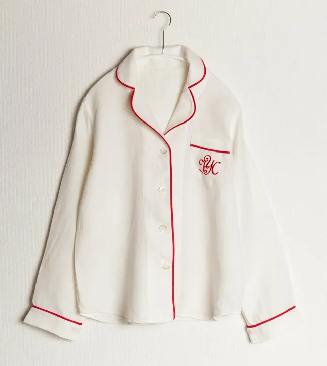 ほどよい厚み(1/40番手)の洗いこまれた綾織りベルギーリネンを使っています。 ガーゼのような風合いと、着るほどに肌触りが心地良くなるリネン100%のパジャマです。 白に近いオフホワイトに、太めのパイピングテープと同色の胸ポケットの刺繍がアクセントになっています。 身頃脇やアームホールなど、すべての縫い合わせ部分を折り伏せ縫いにしているので、引っかかりがなく、ほつれにくく、丈夫です。 ブランドタグは首元を避けて、前身頃の下にさりげなく。 すべてのパジャマに、同素材の袋(H34×W30)が付いているので、ご旅行にも便利です。 お洗濯ではタンブラー乾燥はお避け下さい。 生地の特質上若干縮みますので、サイズ選びはご考慮ください。
