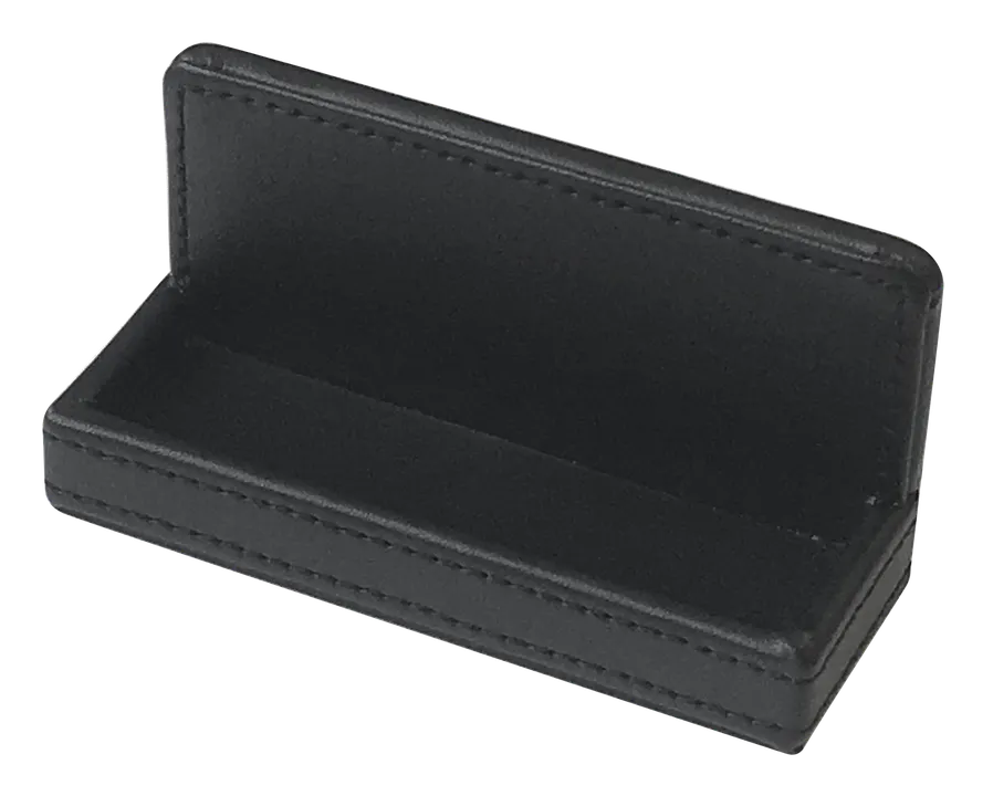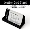 【カードスタンド ブラック】 ●柔らかく、肌触りの良い上質な合皮素材(PU)を使用した、  高級感のある卓上収納シリーズ。  <ペンスタンド、カタログスタンド、つり銭トレー、   カードスタンドの展開。> ●各業界のオフィスや店舗のカウンター周辺の備品としても最適。  カラーは落ち着きのあるブラックで、どんな空間にもマッチする、  シンプルで飽きのこない、スタイリッシュなデザイン。  丁寧なステッチで仕上げてあります。