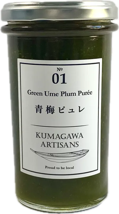 一年で数日間しか入手できない熊本県人吉球磨地方産の上質の青梅を、手間をかけ裏ごしし、お砂糖だけを加えて銅製の鍋で丹念に練り上げた美しい翡翠色のコンフィチュールです。お口に含むと鮮烈な酸味とさわやかさで五感がシャキっとするような格別な味わいをぜひ体験してみてください。パンやヨーグルトとご一緒に、水や炭酸で割って梅ドリンクに、焼酎やジンに加えればおいしい梅カクテルになります。また、醤油、酢、味噌などと合わせれば素材のクセを消し、美しいテリを生む調味料としてお料理にもお使いいただけます。天然のクエン酸がやさしく体を潤す「梅はその日の難逃れ」という古くからの言い伝えをそのままに、毎日の食卓でお楽しみください。