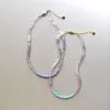 “風景と色” は 時のうつろいと景色をあらわす日本語に着想を得て その気配を、ジュエリーに落とし込んだcollectionです --- 淡雪(あわゆき) 雪が降りはじめるころ 音もなく、空気のなかに溶けていく白 降り積もる前に ほどけるように消えていく雪は 冷たさよりも やわらかな光をまとっています 触れたと思った瞬間に 形を失ってしまう―― そんな儚さを含んだ色です 静かな風景のなかで 冬の終わりと春の兆しが交わり 移ろいはじめた時の気配に触れながら そっと次の季節へ向かいます --- 彼誰時(かわたれどき) 夜が明ける前のころ 闇と光の境がほどける時間帯 光はまだ頼りなく 世界は影をまとったまま 人の姿も、景色の輪郭も 確かさを取り戻しかけていく―― そんな移ろいの瞬間を表す言葉です 見知らぬ風景のなかで ”それが誰であるのか”を問いながら 芽生えはじめた時の気配に触れ そっと歩み出します --- material ガラスビーズ、真鍮、マグネット、テグス *シルバービーズはパラジウムッキ加工を施したものを使用しております *留め金具はマグネットタイプを使用しております size 約460㎜+アジャスター50㎜ weight 約26.3g *CACICOの商品は全て1点1点制作しているため、個体差があり、商品写真と差がある場合がございます。ご了承の上、ご購入ください。 *金属アレルギーの方はご使用をお控えください