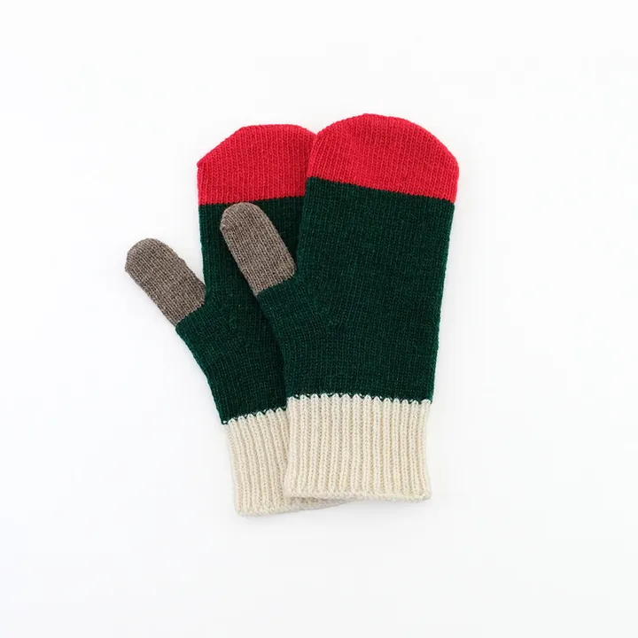 リューズニット 遊び心のある配色使いのミトン GN(グリーン)