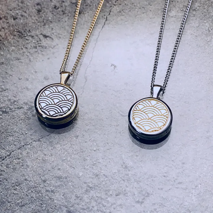 素材 SilverColor : platinumcoating(Silver925) GoldColor: K18 coating (Silver925) サイズ 【モチーフサイズ / motif size】約13mm(about13mm) 【チェーン長さ / necklece chain 】45cm ※その他長さはお問合せください。 その他商品説明 伝統文様を細部まで丁寧に仕上げた首飾り。 金銀の異なる2色を組み合わせ、 背面はあえてマットで荒く仕上げることで正面との差を演出することで 美しさをより際立たせ上品に首元を飾ります。 描いている柄は日本で古くから愛されている文様柄。 古来から襖紙や建具の組子の柄としてなど身近なものへ使用され長く愛されてきました。 複雑な表現をせず、シャープでおしとやかな印象は 和な装いにはもちろん、洋服に合わせても モダンな印象を与えてくれます。 それぞれの文様には昔から人びとが想いを込めてきた伝統的な意味があり親しまれてきました。 ぜひ、お気に入りの文様をお選びください。 ■菊(きく) 放射状に整った花弁を太陽に見立て、邪気を払う力があるとされている「不老不死」「延命長寿」「無病息災」など健康面の願いが多く込められた縁起の良い模様。 ■麻の葉(あさのは) 麻はとても成長が早く、生命力が強い植物。 子どもの健やかな成長を願い、魔除けとして産着やお守りにもよく使われる縁起の良い文様。 ■青海波(せいがいは) 穏やかな波を描いた模様。 どこまでも続く波模様には「未来永劫穏やかに暮らしていけるように」という願いが込められている縁起の良い文様。 ■三つ巴(みつどもえ) 神霊が宿る勾玉や水流を象った渦巻が「三つ巴」の由来としてあげられることから、魔除けや火災除けの願いが込められた縁起の良い文様。 ■エ霞(えがすみ) 春の兆しが感じられる自然現象の一つとする「霞」。 雲は天へとつながるので、神聖の意味もあり、慶弔の両方に使われる縁起の良い文様。 ご発送について 商品在庫がある場合はご注文をいただいてから3日以内に発送いたします。 在庫がない場合は2週間〜1ヶ月ほどお時間を頂いております。予めご了承ください。