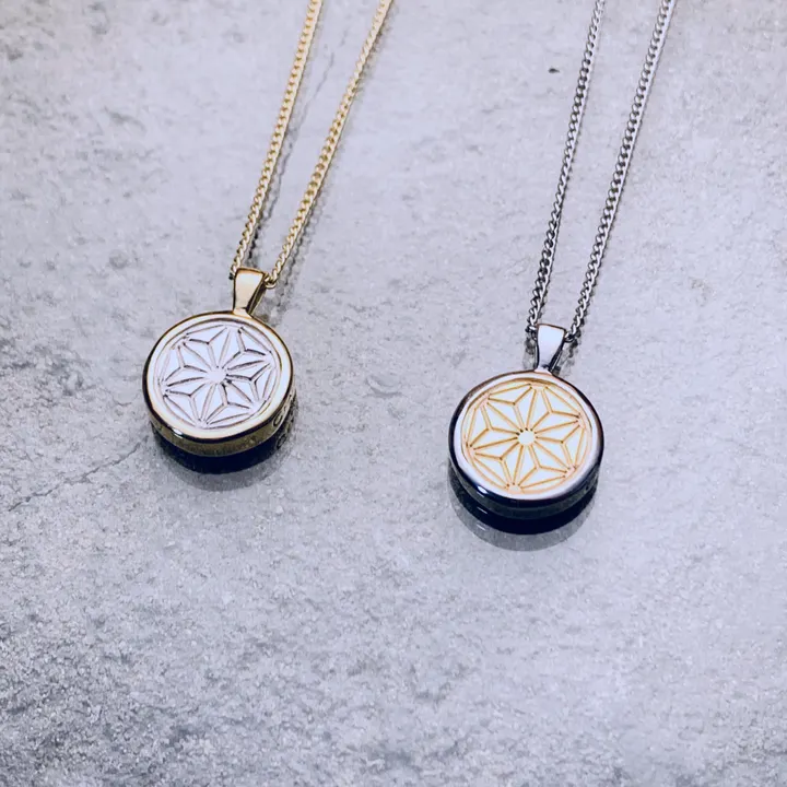 素材 SilverColor : platinumcoating(Silver925) GoldColor: K18 coating (Silver925) サイズ 【モチーフサイズ / motif size】約13mm(about13mm) 【チェーン長さ / necklece chain 】45cm ※その他長さはお問合せください。 その他商品説明 伝統文様を細部まで丁寧に仕上げた首飾り。 金銀の異なる2色を組み合わせ、 背面はあえてマットで荒く仕上げることで正面との差を演出することで 美しさをより際立たせ上品に首元を飾ります。 描いている柄は日本で古くから愛されている文様柄。 古来から襖紙や建具の組子の柄としてなど身近なものへ使用され長く愛されてきました。 複雑な表現をせず、シャープでおしとやかな印象は 和な装いにはもちろん、洋服に合わせても モダンな印象を与えてくれます。 それぞれの文様には昔から人びとが想いを込めてきた伝統的な意味があり親しまれてきました。 ぜひ、お気に入りの文様をお選びください。 ■菊(きく) 放射状に整った花弁を太陽に見立て、邪気を払う力があるとされている「不老不死」「延命長寿」「無病息災」など健康面の願いが多く込められた縁起の良い模様。 ■麻の葉(あさのは) 麻はとても成長が早く、生命力が強い植物。 子どもの健やかな成長を願い、魔除けとして産着やお守りにもよく使われる縁起の良い文様。 ■青海波(せいがいは) 穏やかな波を描いた模様。 どこまでも続く波模様には「未来永劫穏やかに暮らしていけるように」という願いが込められている縁起の良い文様。 ■三つ巴(みつどもえ) 神霊が宿る勾玉や水流を象った渦巻が「三つ巴」の由来としてあげられることから、魔除けや火災除けの願いが込められた縁起の良い文様。 ■エ霞(えがすみ) 春の兆しが感じられる自然現象の一つとする「霞」。 雲は天へとつながるので、神聖の意味もあり、慶弔の両方に使われる縁起の良い文様。 ご発送について 商品在庫がある場合はご注文をいただいてから3日以内に発送いたします。 在庫がない場合は2週間〜1ヶ月ほどお時間を頂いております。予めご了承ください。