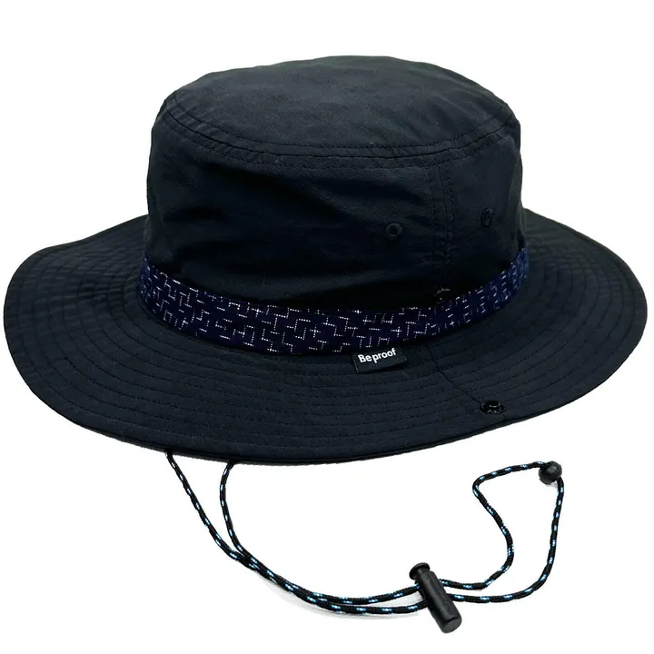 【久留米絣×Be proof】つば広ハット 撥水 綿ナイロン 木綿織物 福岡県 伝統 帽子 オリジナル BLACK