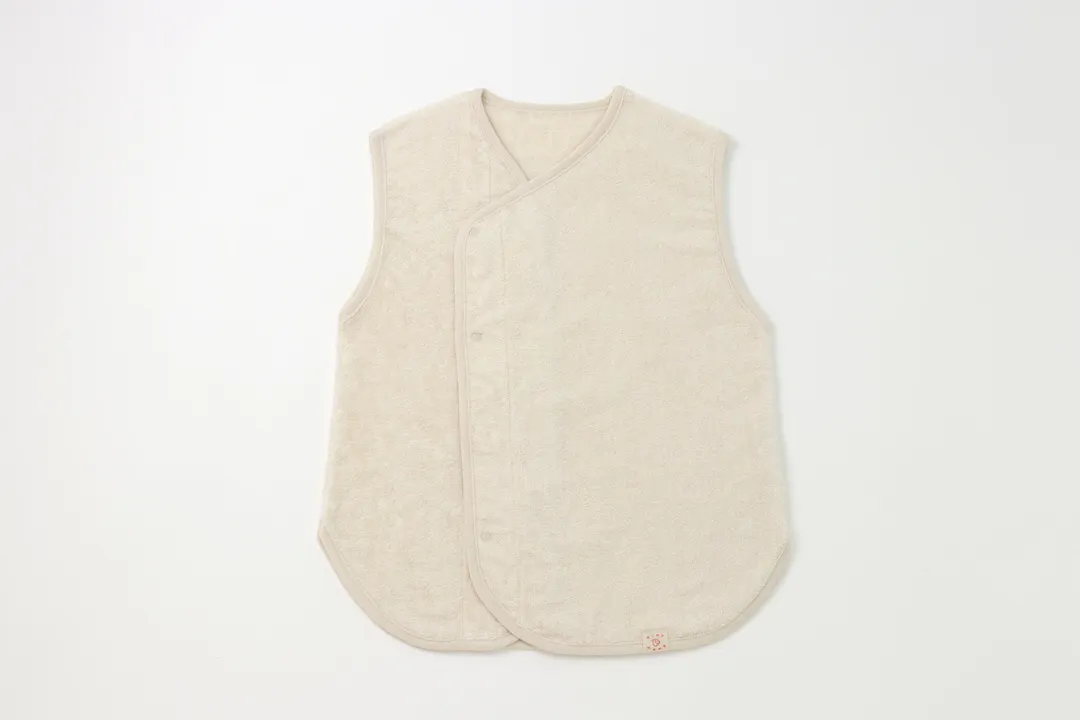 tinymame(タイニーマメ)は、愛媛県今治市のテキスタイルメーカー・ 渡辺パイル発の、ベビー&キッズ向けブランドです。 素材には良質なオーガニックコットンを100%使用。瀬戸内の豊かな自然をモチーフにした完全オリジナルのテキスタイルを自社工場で織っています。 タオルはもちろん、小さな子どものいる毎日に欠かせないアイテムを展開しています。 とっておきのふわふわベスト。長くお使いいただけるゆったりとしたサイズ感で、ベビーのスリーパーやキッズのベストとしておすすめです。 ●feel柄に込めた思い May it add a touch of happiness to your day. これであなたの一日が、幸せな触り心地になりますように。 ●feel柄のモチーフ なめらかでふんわり、シンプルでモダンな佇まい。ずっと触れて素材を味わいたくなるようなシリーズ。