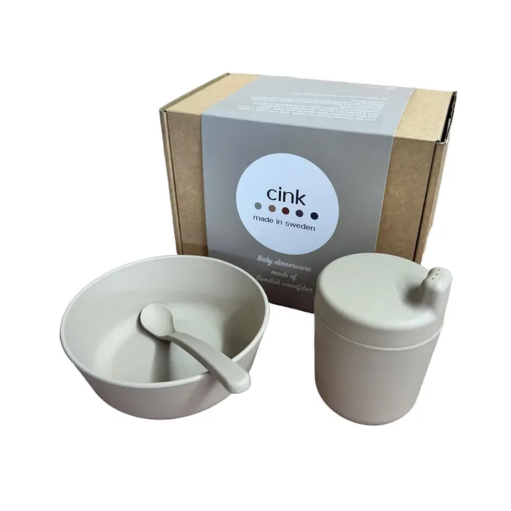※本国でのブランド終了に伴い、在庫限り販売終了となります。 The perfect gift for the newborn! 赤ちゃんが初めてお食事をする際に便利な食器をセットにしました。 ボックス入りなので、出産祝いなどのギフトにもおすすめです☆ スパウト付きマグは蓋を外すことができるので、お子様が大きくなった後は、マグとしてお使い頂けます。 ボウルはお子さまたちの食事だけでなく、朝食時のシリアルやスープを頂く時にも最適。 柄の長いフィードスプーンは、大人の方がお子さまにお食事を食べさせてあげる時にお使いください。 【セット内容】 マグ、マグ用スパウト蓋、ボウル、フィードスプーン ☑ <Made in SWEDEN> 中国から、スウェーデンでの製造へ切り替わりました。 自国で製造することにより、商品輸送時に排出されるCO2を削減できます。 紙帯や箱のパッケージもスウェーデン製のものを使用しています。 ☑ <素材のアップデート> 木繊維とバイオベースのPP(ポリプロピレン)からなり、リサイクル可能です。  木繊維はスウェーデンの工場から65km圏内から調達された、FSC®またはPEFC認証を受けた間伐材等を使用しています。 ☑ <軽量化> 素材の変更により、従来品より軽くなりました! また耐久性も高まったことから、インドアだけでなく、アウトドアでも活躍します◎ ――――――――――――――――― こんな方にオススメ! ☑エコやサステナブルな生活をこれから始めたい方 →環境に配慮された素材であり、シンプルなデザインなのですぐに生活に取り入れられます◎ ☑環境問題に関心の高い方 →リサイクル可能な素材を使用。自国生産することでCO2削減に貢献しています。 ☑デザイン性も大切にしたい方 →シンプルなスカンジナビアデザインと5つのニュアンスカラーによる、スタイリッシュなデザイン。 ☑大切な方へのプレゼントに ――――――――――――――――― □ブランド説明:cink □ スウェーデン発 スタイリッシュで環境にも優しいテーブルウェア cink(サンク)は母であるElenaが、ちいさな家族=ベビー・キッズに向けて立ち上げたテーブルウェアブランド。あらゆる家族と年齢層に飽きなく使い続けてもらえるよう、スタイリッシュで機能的なデザインに、シンプルで柔らかな5つのニュアンスカラーを製品へ落とし込みました。社名はフランス語の「5=cinq」が由来。 ブランドの核となるのは、落ち着いたカラーリングのシンプルなスカンジナビアデザインと、環境に配慮された素材です。 私たちと一緒に、より持続可能な未来に一歩近づきませんか。
