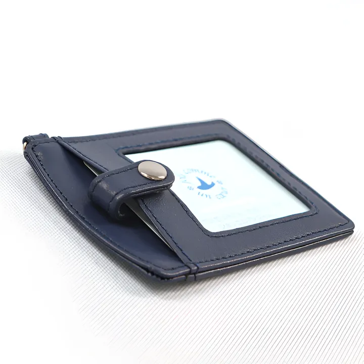 リールストラップ付き 牛革製パスケース(両面タイプ)定期券の落下を防ぐボタン付き