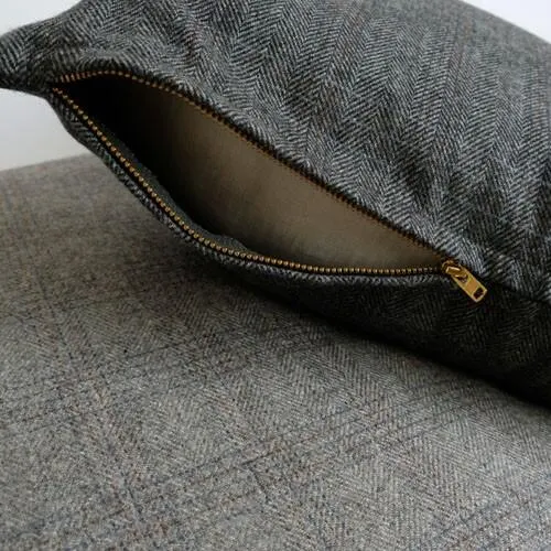 リサイクルウールを使用したクッションカバーです。 ヘリンボーン織りとさり気なく入ったチェック模様が印象的で、 お部屋のポイントになる一点です。 ※Sサイズ完売 【ファブリック】 【新生活】【エシカル(エコ素材)】【秋冬】