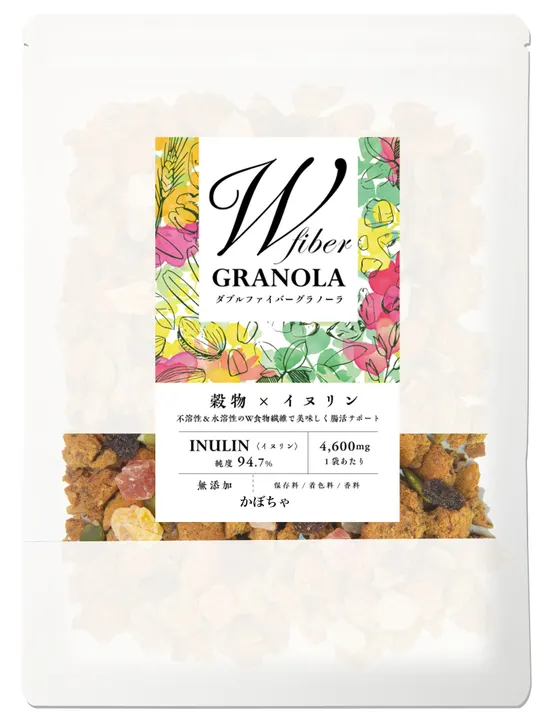 1) この商品で何ができるのか/どんな商品なのか(製品概要) 区分:シリアル加工食品(グラノーラ) コンセプト: 国産生おから(不溶性食物繊維・たんぱく)+オートミール(β-グルカン)に、高純度イヌリン(水溶性/原料純度目安94.7%)を配合したW食物繊維設計。 メープル風味、無添加設計(保存料・着色料・香料不使用)。 2)どうしてこの商品が誕生したのか(開発背景) 朝食や間食で食物繊維摂取(不溶性+水溶性)を一度に行いたいという需要に対応。 国産生おから×オートミールで食感と栄養バランスを両立し、高純度イヌリンで水溶性繊維を強化。 3) 使うシーンの明示/導入メリット 想定販路:ドラッグストア、自然食品店、GMS、EC、カフェ物販 など 棚割提案:糖質配慮/グルテンフリー/食物繊維強化/プラントベース 導入メリット: W食物繊維・**原料訴求(国産おから/OTCOオーツ/高純度イヌリン)**で比較軸が明確 無添加(保存・着色・香料不使用)、ココナッツオイル使用など安心感の高い処方 ナッツ&フルーツで食味・見栄えが良く、リピート提案が容易 4) お勧めの使い方 1食の目安:40–50g(牛乳、豆乳、ヨーグルト、植物性ミルク等と一緒に) 活用例:朝食の主食置換/間食の置き換え/サラダのトッピング/アイス・パフェのクラッシュ利用 注意例:食物繊維豊富なため、初期は少量から。体質・体調によりお腹がゆるくなる場合は量を調整。 5) どんな人におすすめか 食物繊維の摂取を強化したい層 グルテンフリーや無添加志向の層 朝食の栄養バランスや間食の質を高めたい層 ※個人差があり、医薬的効能の断定は不可。