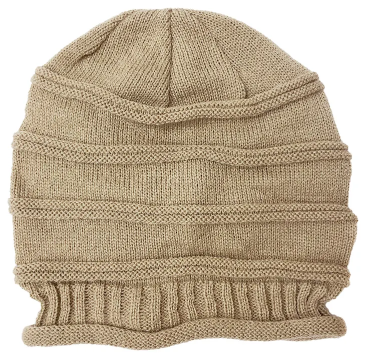凹凸感のあるラインを入れた編み地で後ろにギャザーを入れたゆったり被れるニット帽。薄くて軽い編み地に仕上げています。